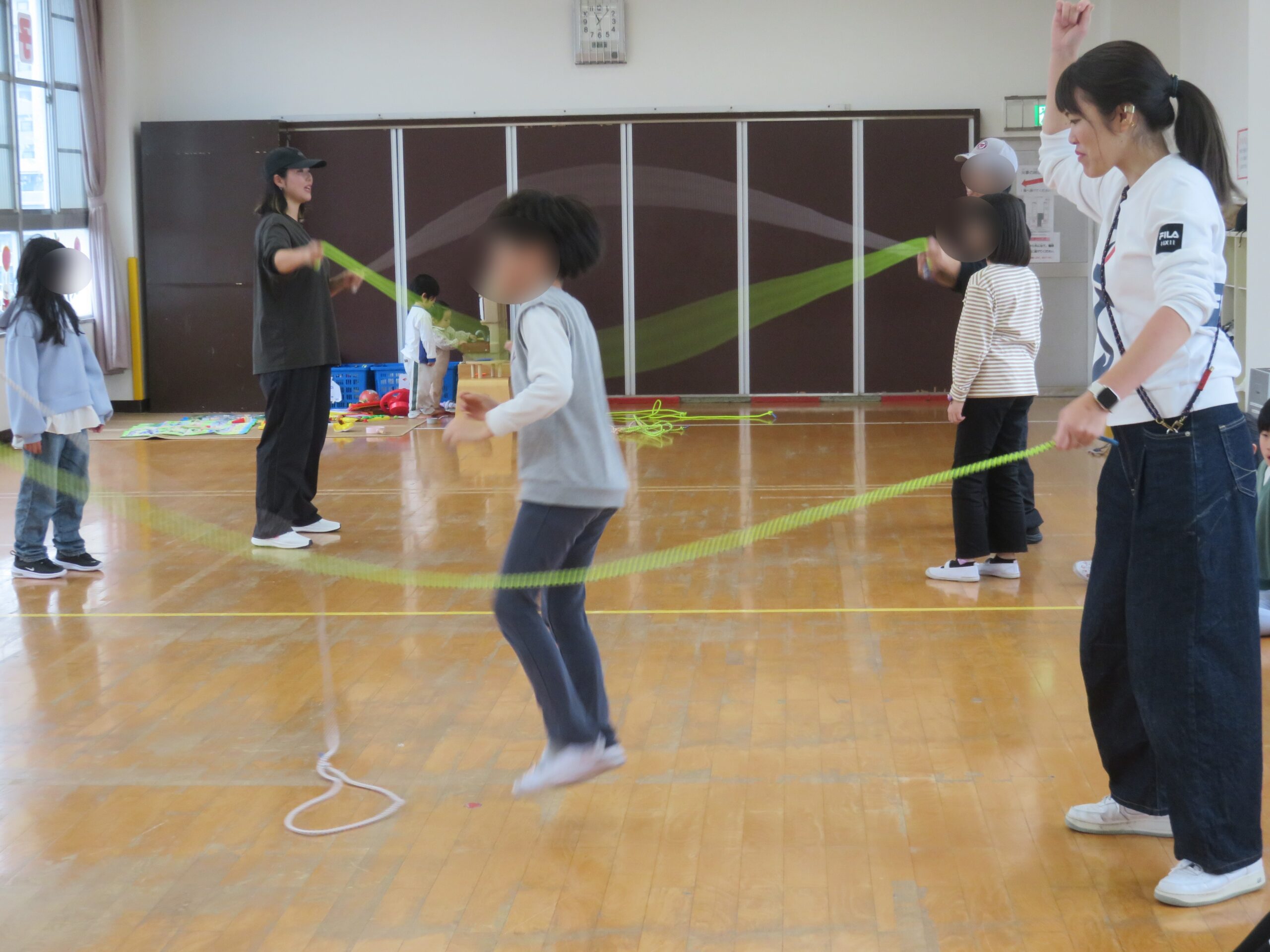 ロープの中で駆け足や、1回転する子どもたちもおり、「初めてやったのに跳べた」「もっといろんな技やってみたい」と、楽しんでもらえました😄